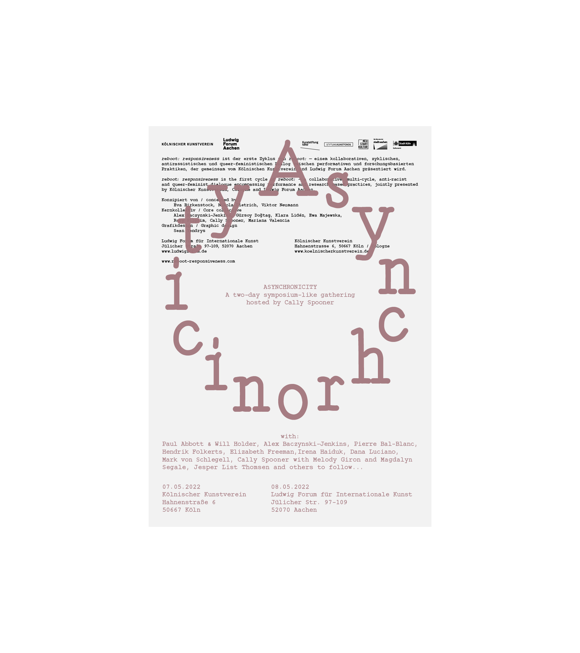 Silkscreen over-print on base-layer to announce the weekend-long symposium Asynchronicity